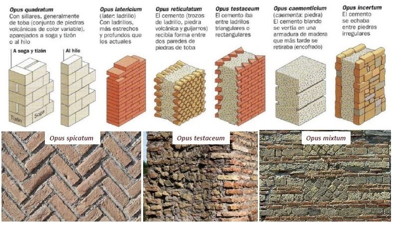 The chart below shows the different types of brickwork and cement that the Romans used in their building works.