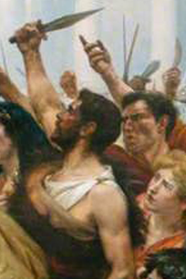 The crowd had heard enough; they went from being mourners to an angry mob; their wailings got louder, their cursing more vengeful. With raised clenched fists they began calling for the perpetrators of this foul deed to pay with their lives. Hearing this, the senators quickly slipped away. But this was only the beginning of what the enraged mob would do.